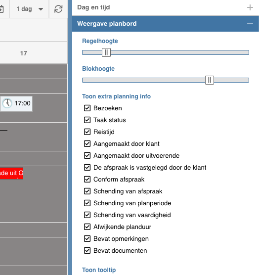 Deze icoontjes kunnen worden aan- of uitgezet worden onder de instellingen weergave planboard.